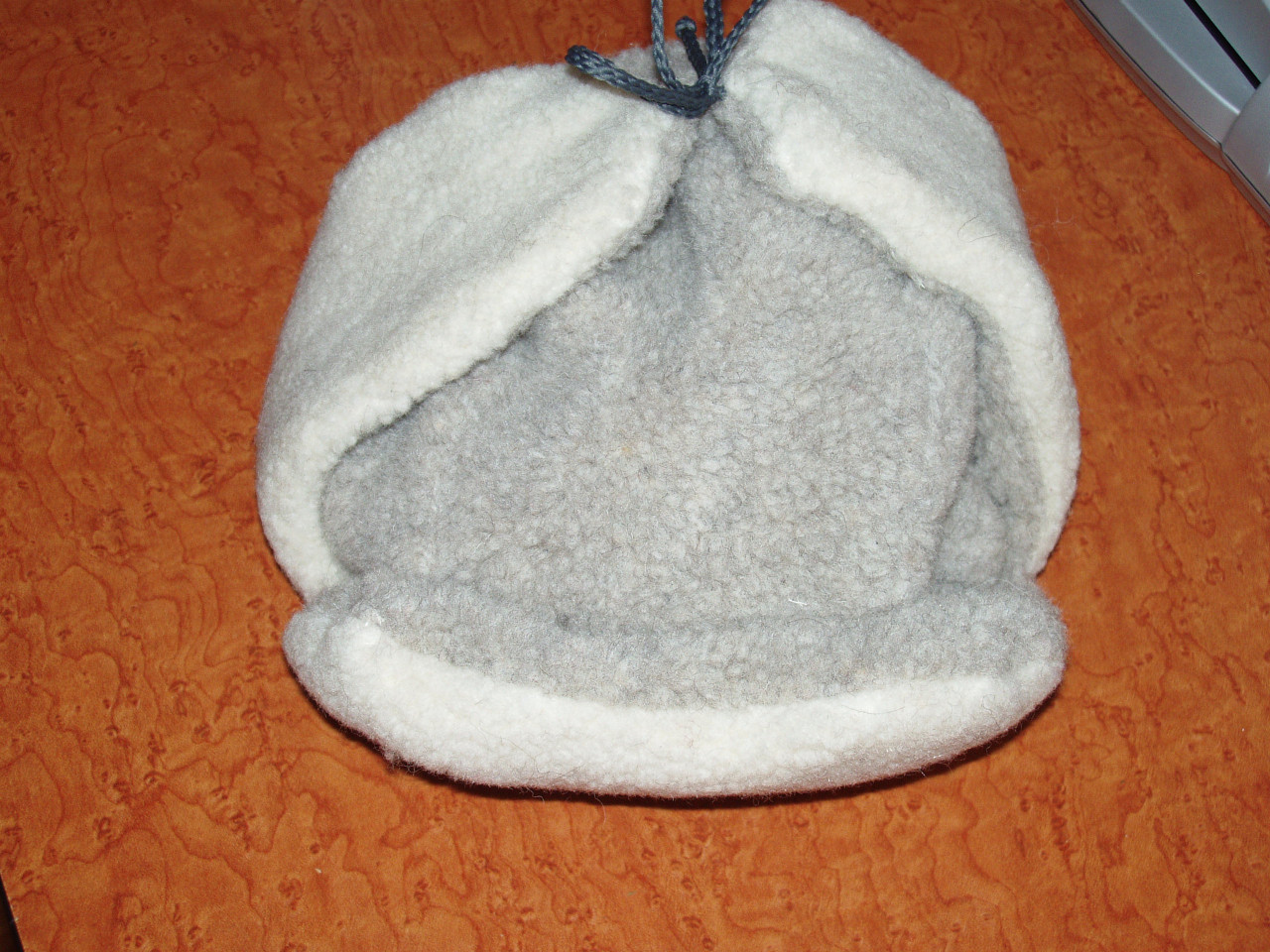 Výrobek je vyroben ze 100% ovčí vlny, uvnitř flauš, zapínání na suchý zip. Velikost 58.