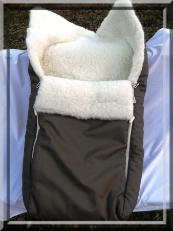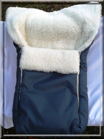 Nádherný dětský zimní fusak do kočárku s vnitřní stranou ze 100% vlny a vnější látkovou úpravou.